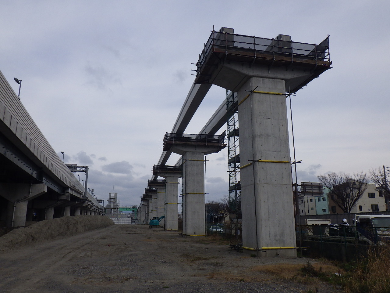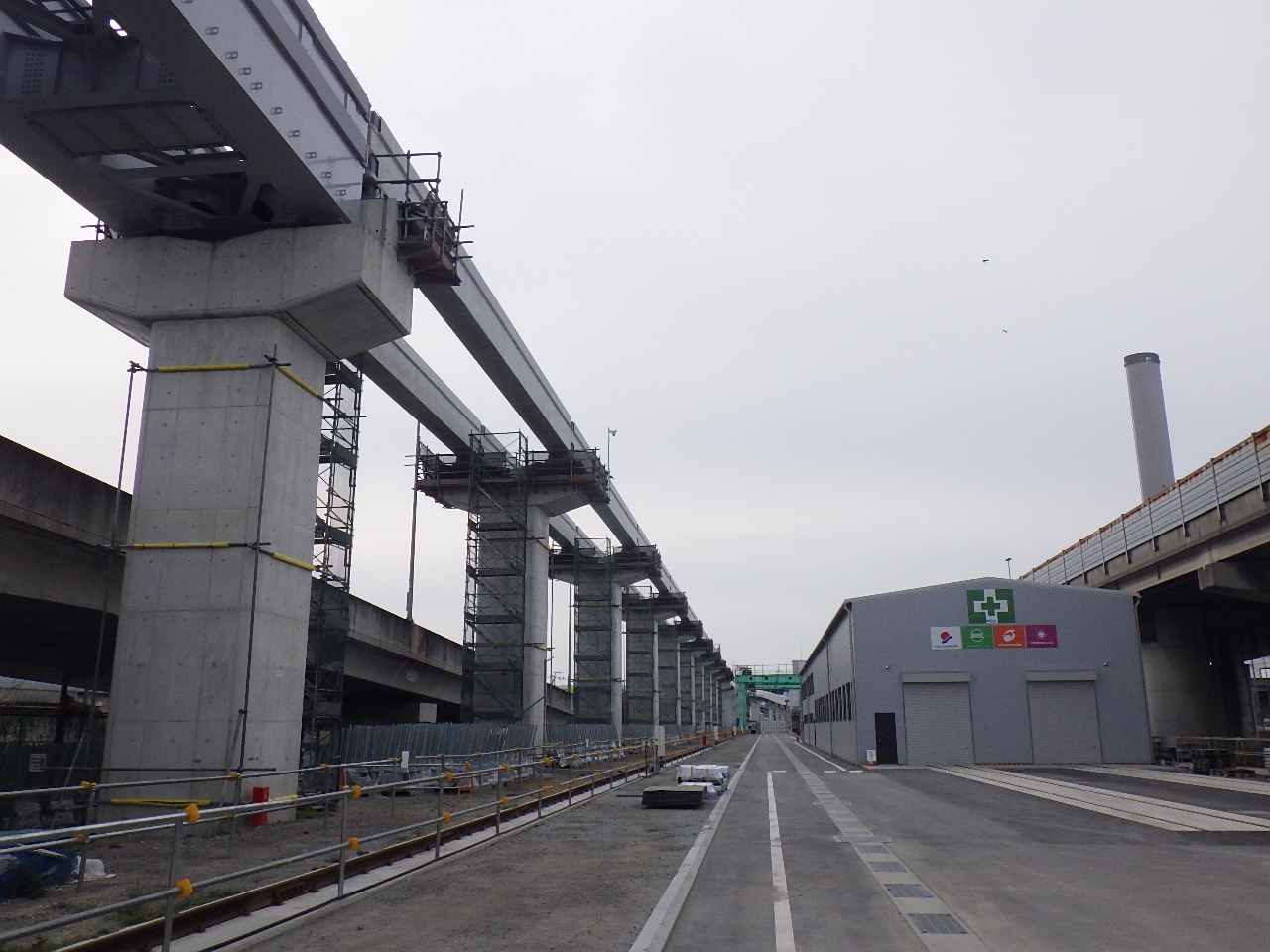 製作場内の桁架設を、3月2日に完了し、引き続き、桁調整を